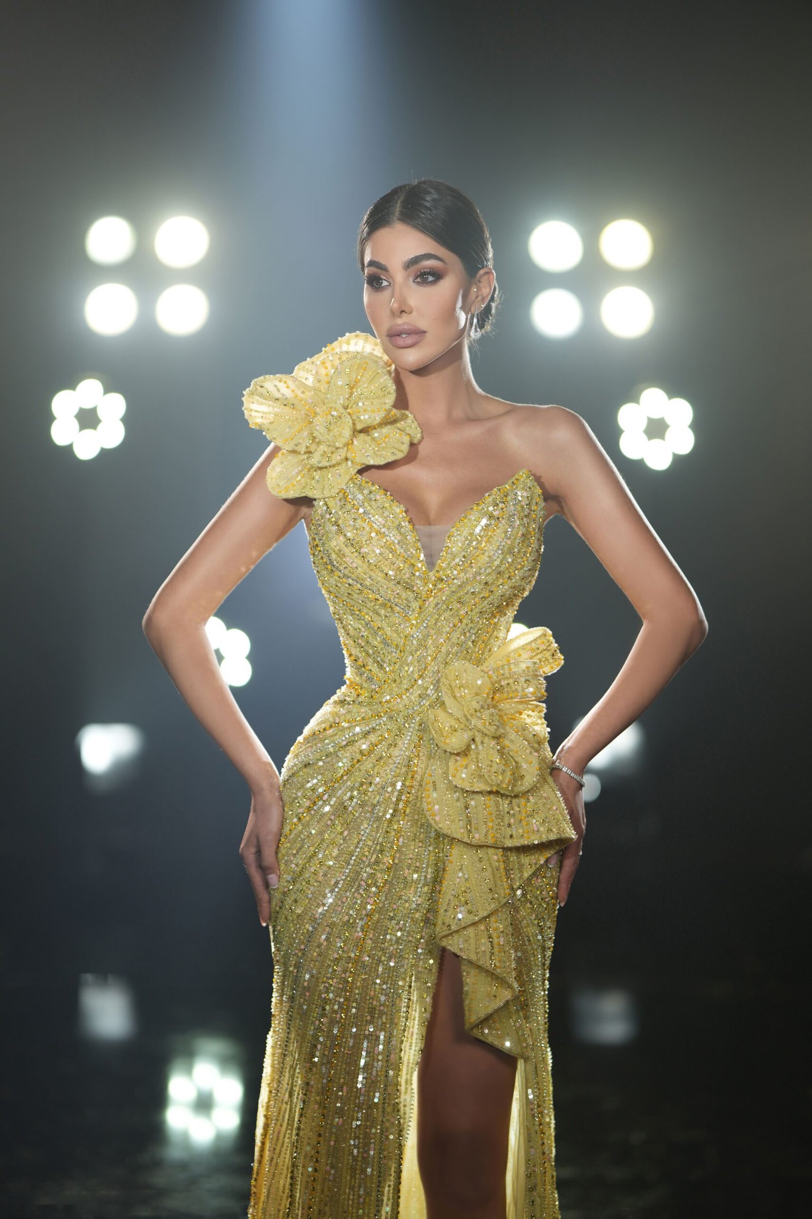 Feel utterly magnificent in “Citrine Bloom.” This show-stopping party dress in a vibrant citrine shade is crafted to make you feel confident and unforgettable. With its dazzling details, flattering silhouette, and elegant high slit, “Citrine Bloom” ensures you’ll be the star of any event.